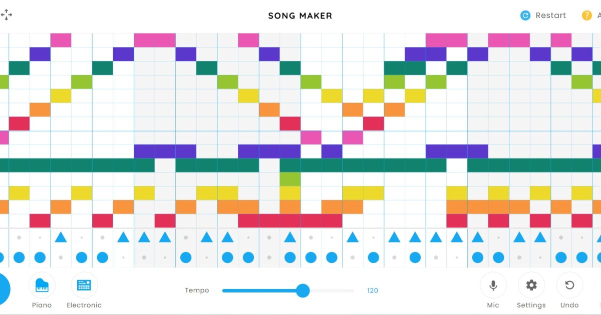 ピラミッドのかいだん ソングメーカーは誰でも簡単に音楽が作れる作曲ツールです。楽譜に見立てたマス目に色をつけると音がでます。ピアノ、マリンバなどでメロディーを、ドラムやコンガでパーカッションも追加できます。好きな楽曲のメ […]