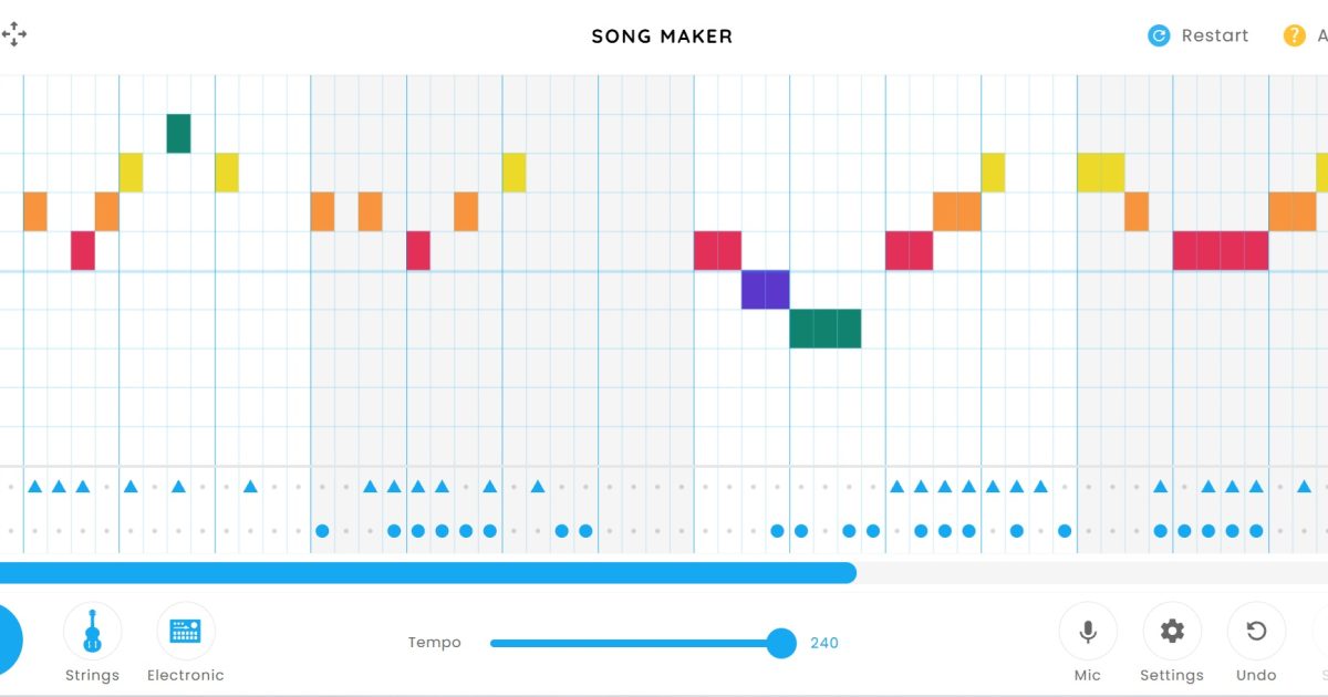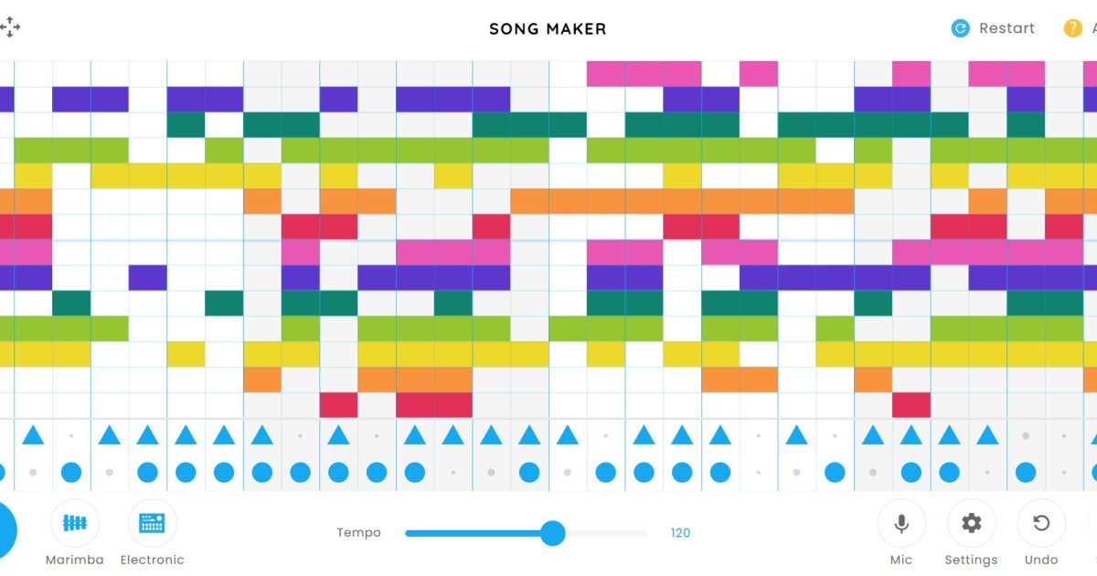 たのしい気分の曲 ソングメーカーは誰でも簡単に音楽が作れる作曲ツールです。楽譜に見立てたマス目に色をつけると音がでます。ピアノ、マリンバなどでメロディーを、ドラムやコンガでパーカッションも追加できます。好きな楽曲のメロデ […]