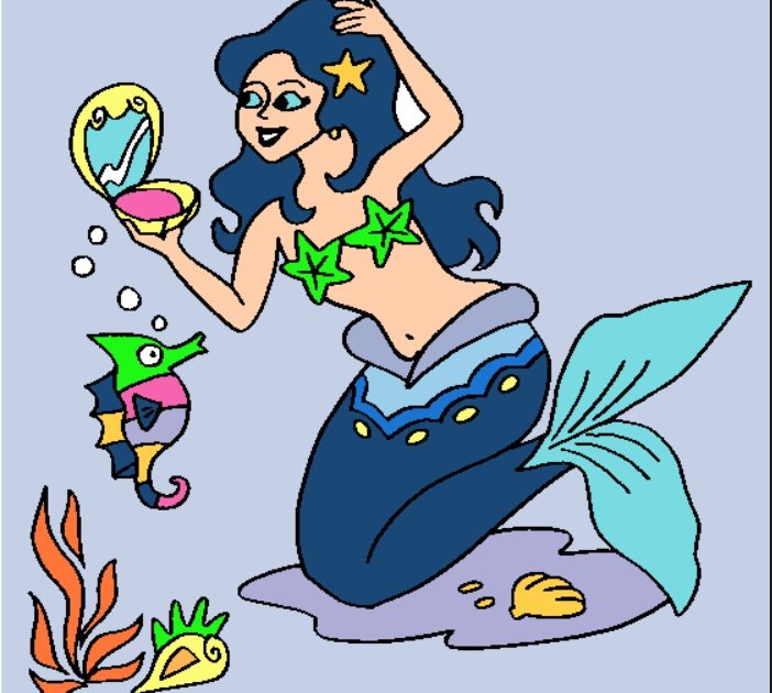青いマーメードのぬりえ