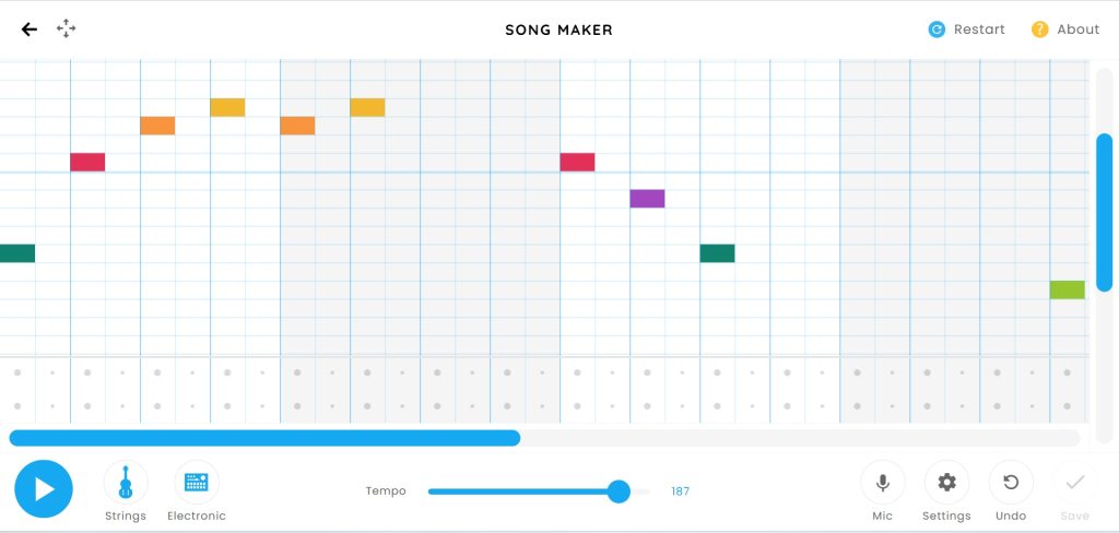 好きな楽曲のメロディをうつしてみたり、自由にお絵描きするように音を鳴らしてみたり音楽づくりを楽しめます。