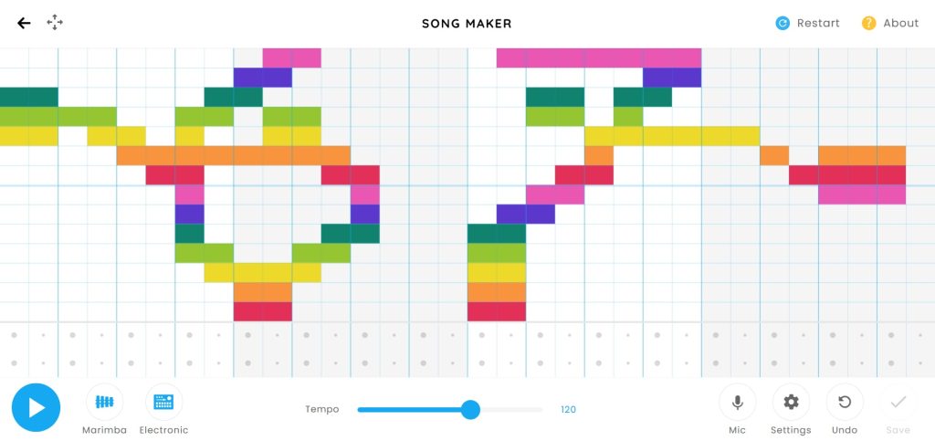好きな楽曲のメロディをうつしてみたり、自由にお絵描きするように音を鳴らしてみたり音楽づくりを楽しめます。